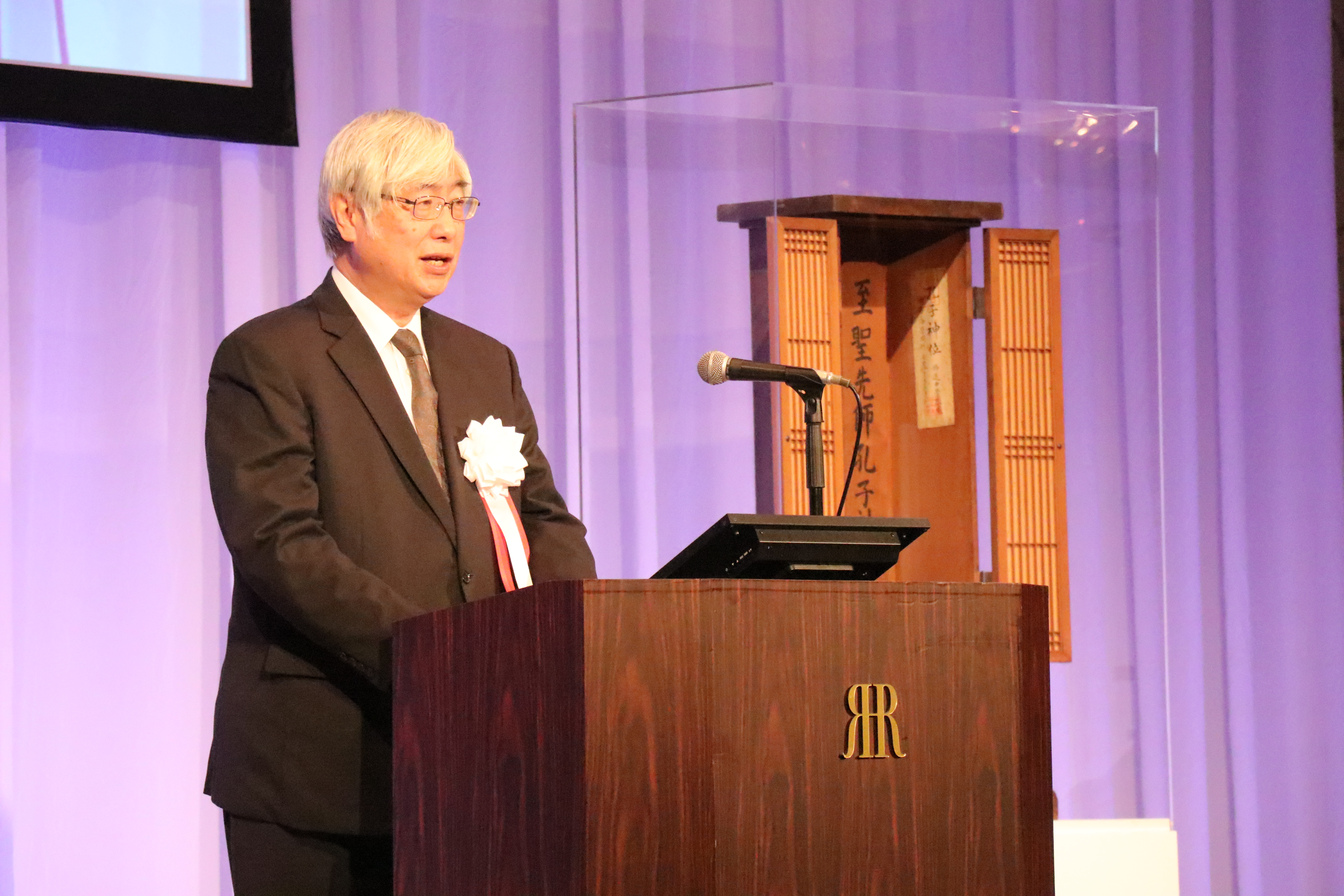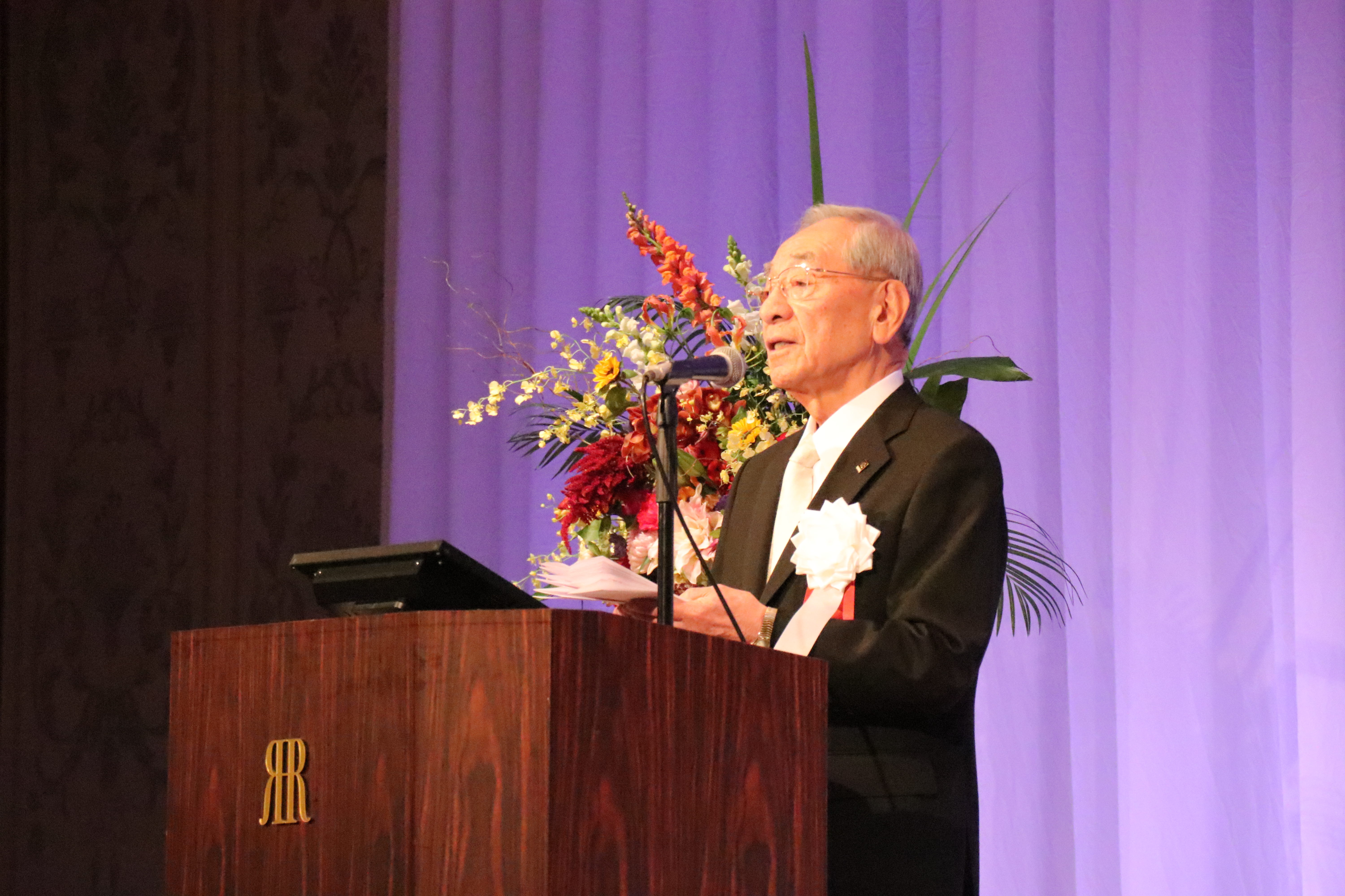 続いて、修道学園 名誉学園長 浅野長孝が挨拶を行い、300年にわたる修道学園の歴史を顧みながら、先人の志と伝統を受け継いでいく決意を新たにしました。