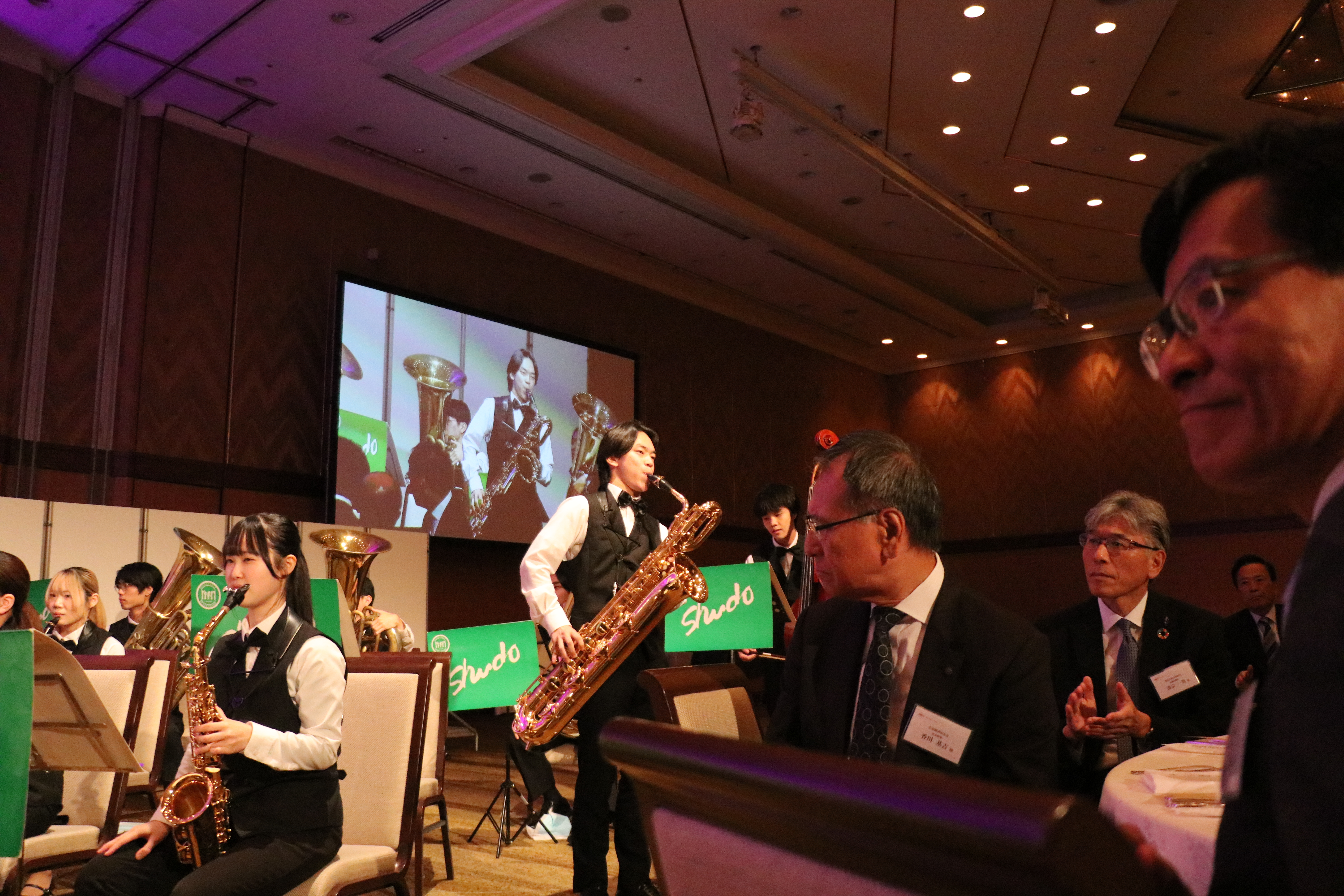 祝賀会は、広島修道大学 吹奏楽部による迫力ある演奏で幕を開けました。
