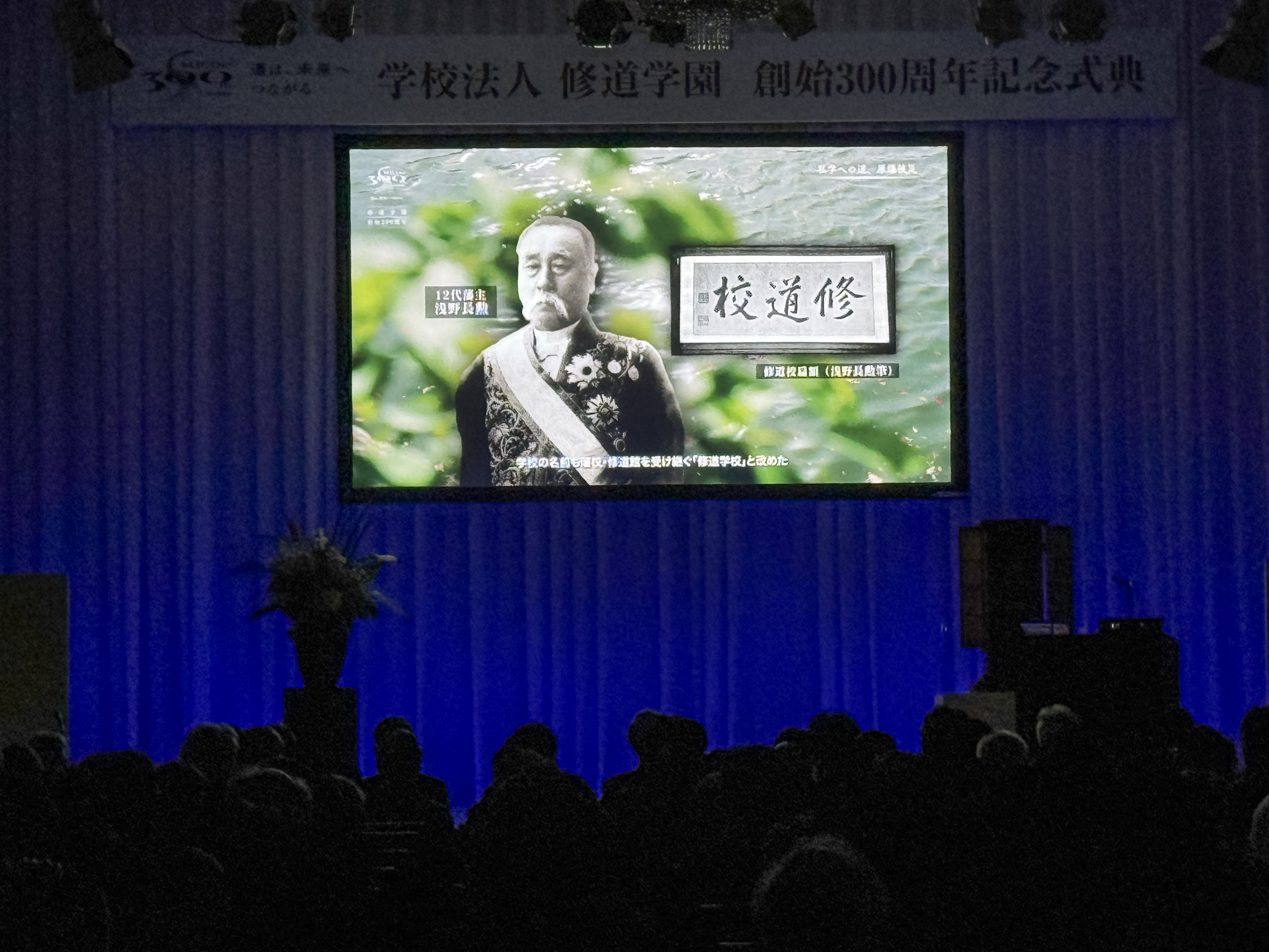「修道学園の道は、未来へつながる。300年のそのさきへ。」と題し、学園の歩みを過去から現在までを振り返る記念映像を放映しました。