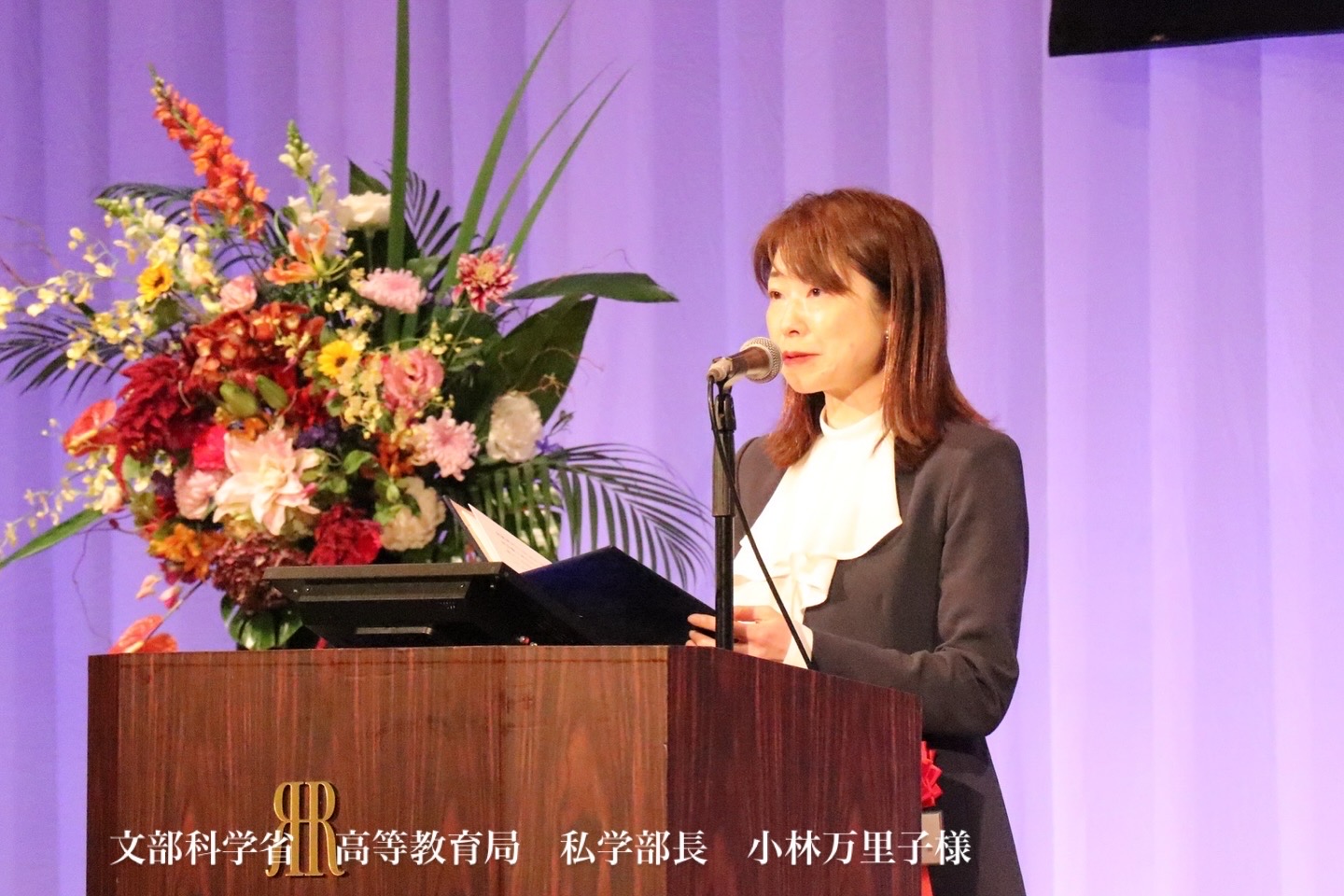 祝辞では、文部科学省 高等教育局 私学部長 小林万里子様、広島商工会議所 会頭 池田晃治様より、お祝いの言葉を頂戴しました。